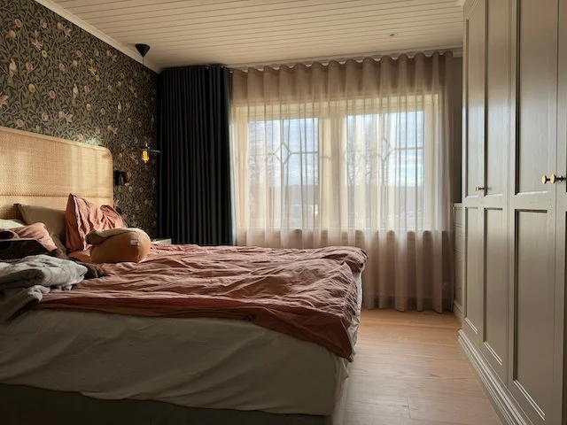 När vi syr gardinen i wave, också kallat “Hotellgardin”, får du en gardin som alltid är fint vågig även när den är helt utdragen. Det ger ett snyggt och stilfullt intryck, speciellt vid höga takhöjder. Kombinera en mörkläggande och en skir gardin i ett sovrum och du får en ombonad känsla och samtidigt flera funktioner. Använd den gardin som passar just nu.