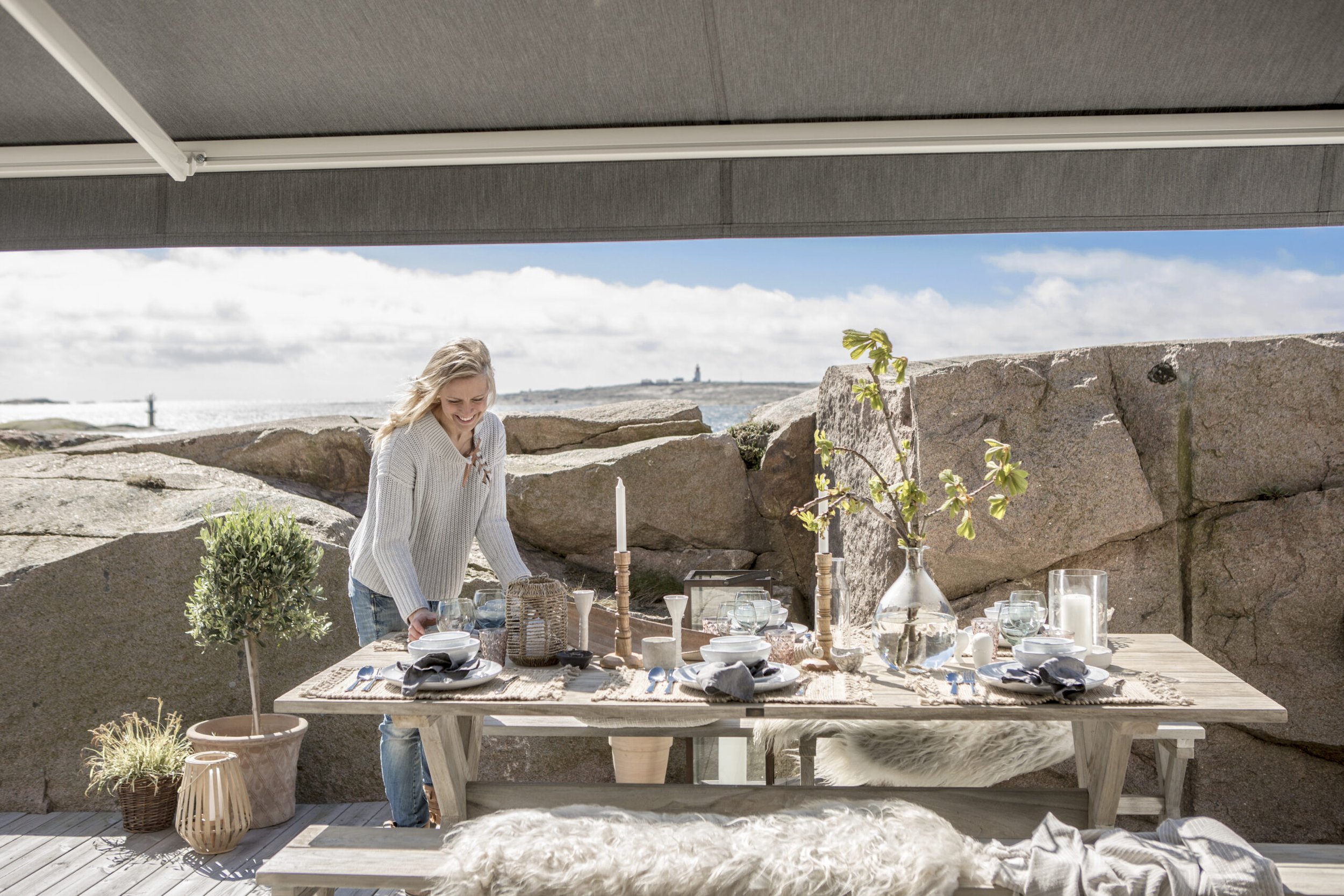 Motordriven blir den lättmanövrerad och om du vill, en del av ditt smarta hem. Komplettera med sensorer som kör in markisen vid starkare vind.